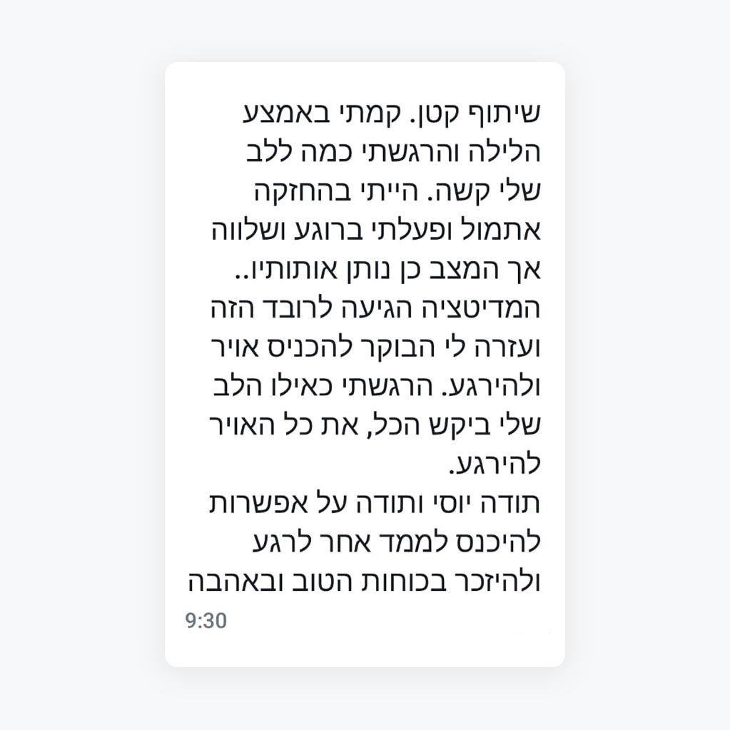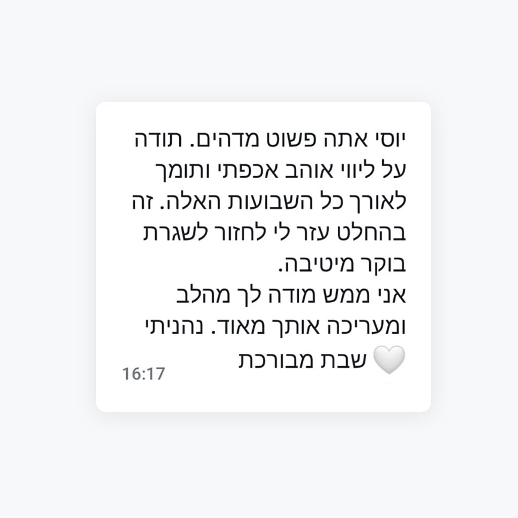 את הדרך המקצועית שלי עשיתי בגופים הגדולים והמשפיעים במשק הישראלי, אבל עם ההצלחה והטיפוס בסולם התפקידים, באו גם אתגרים. כאבים פיזיים, מתחים נפשיים, נולדו ילדים… לחץ ההורות והמסגרת הצפופה שהיא יוצרת… כלפי חוץ הכל היה נהדר, אבל מבפנים – קצת פחות.