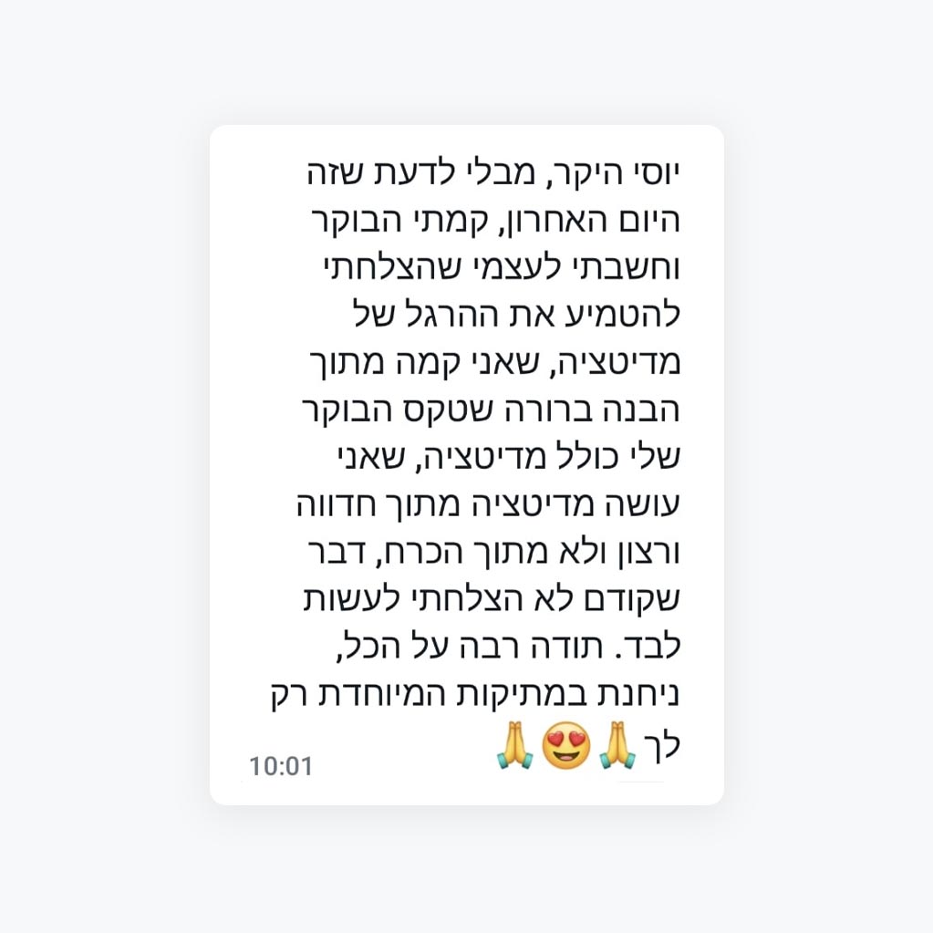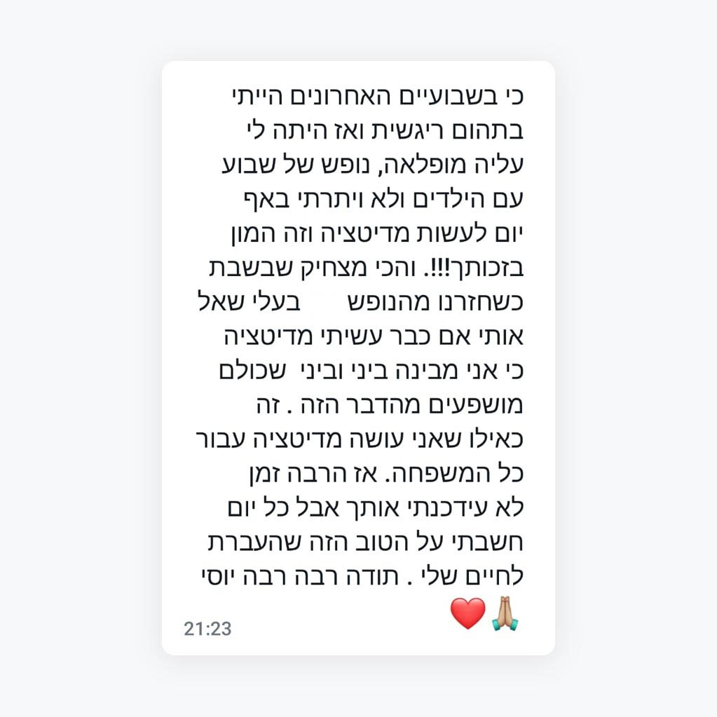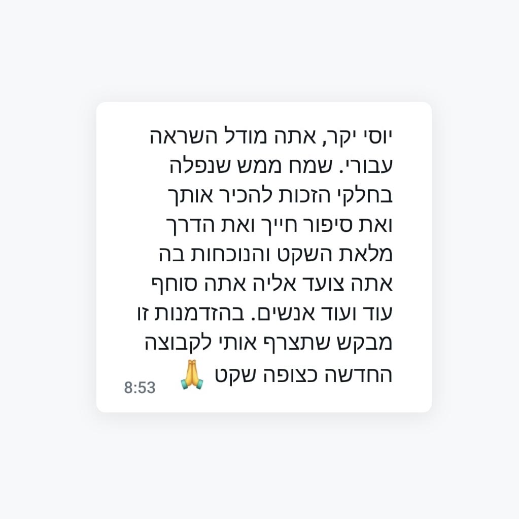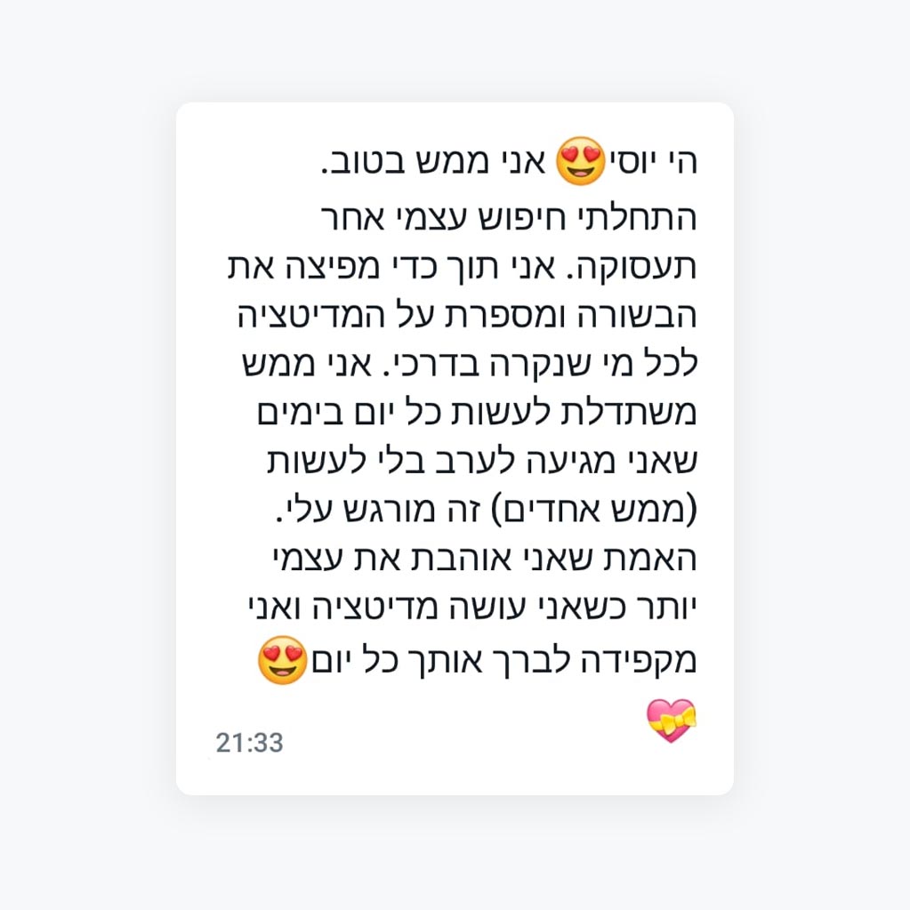 ללמוד איך להתמיד במדיטציה המעשית ככלי מקצועי, ישר מיוסי אילני, מנכ"ל בכיר בתעשייה הישראלית.