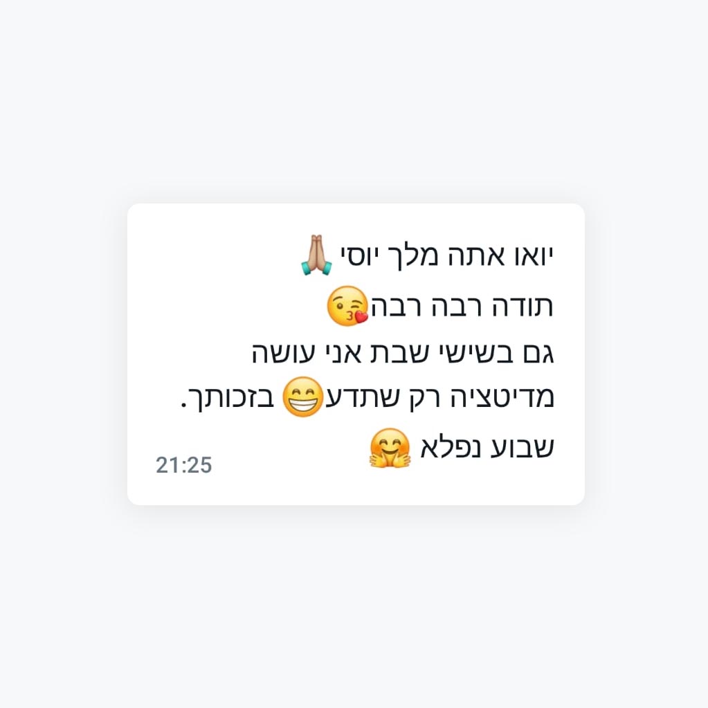 בעוד שאת "התורה הכללית" למד יוסי לאורך שנים, עשרות אלפי תרגולים, ודרך משמעותית בחייו, את המדיטציה המעשית הוא בנה ככלי עבודה (!) כלי אותו אפשר לתרגל בזריזות, להעביר לאחרים בקלות, ולחוות אפקט משמעותי!